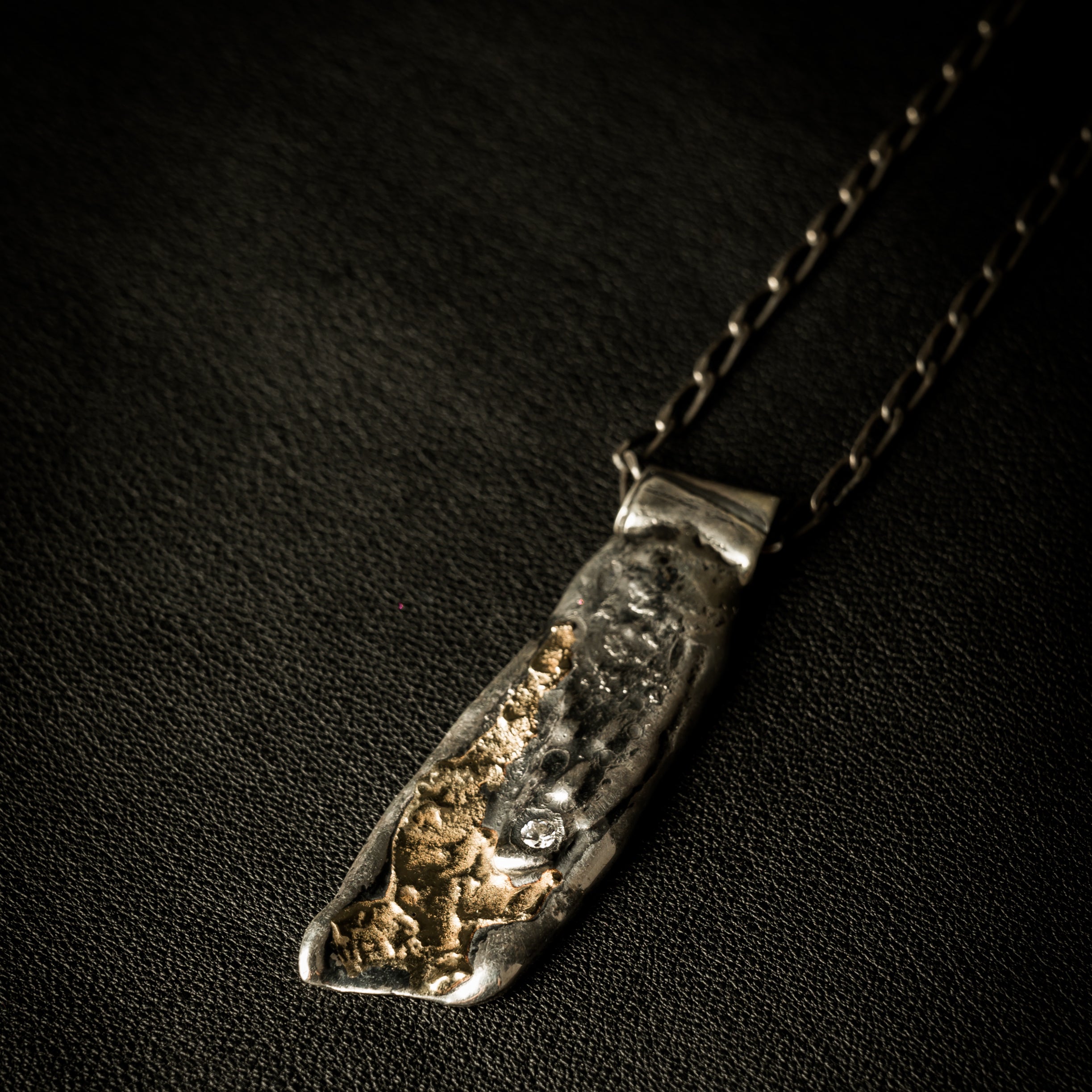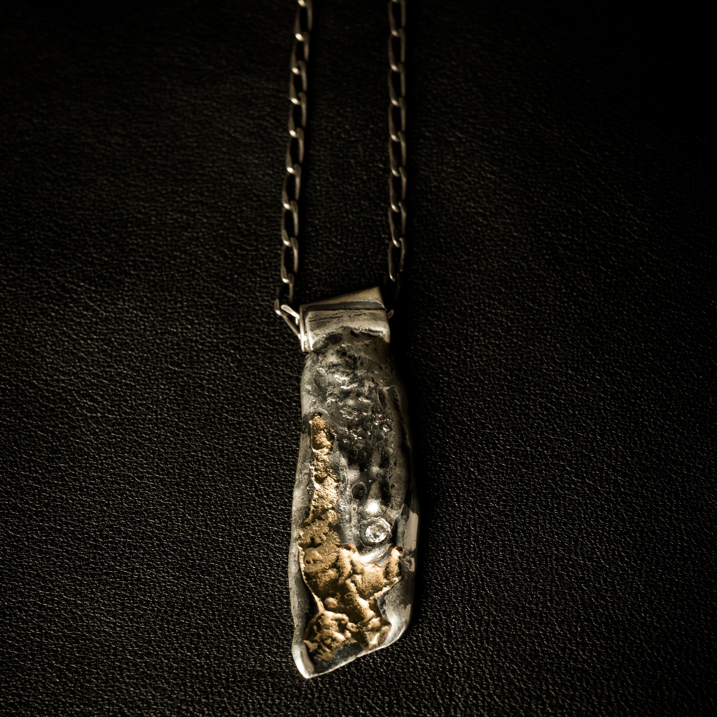 "Vishnu" Necklace – 925 Sterling Silver, Melted 18K Gold, and One White Diamond