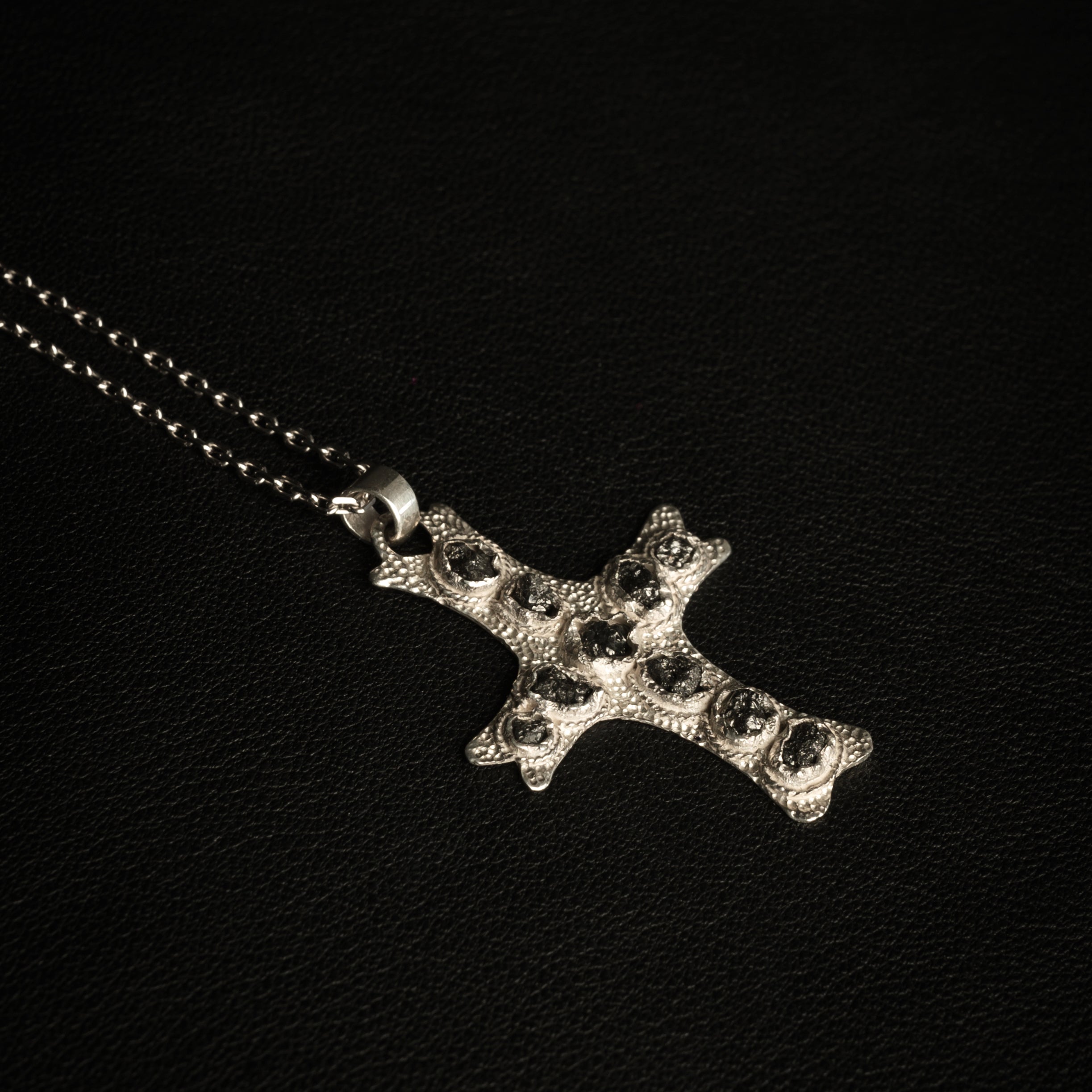 Cross Necklace – 925 Sterling Silver "rough diamond"